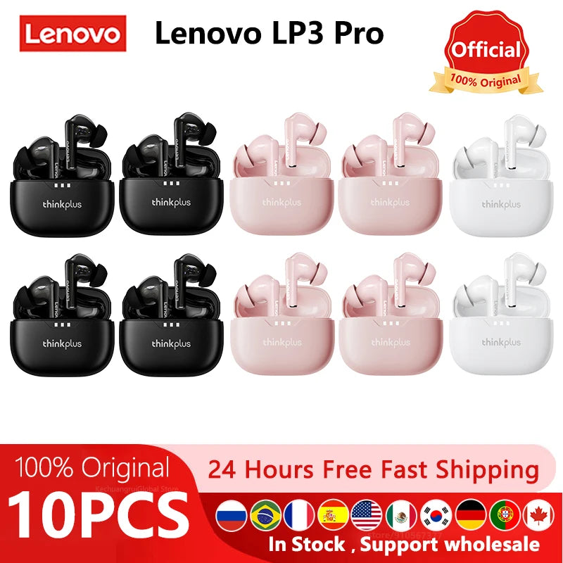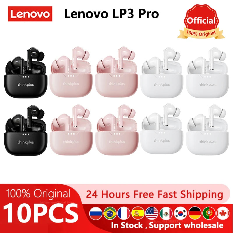 10pcs Lenovo LP3 Pro Wholesale 2pcs Original lp3pro Wireless Bluetooth Headphones HiFi Stereo Earbuds Noise Reduction With Mic