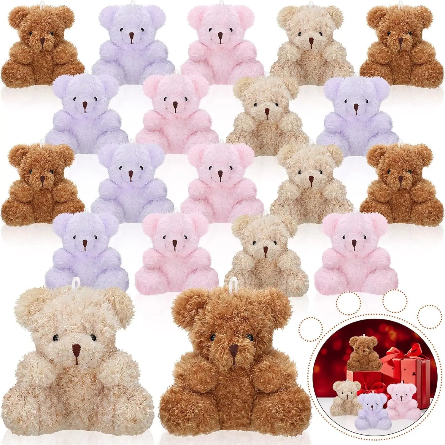 Mini stuffed bear is cute and pretty, lovely and cute, creates a happy and cheerful ambient, which can be widely applied to Christmas, wedding, classroom gift exchange, birthday, carnival party, stocking stuffers, bag charms and so on