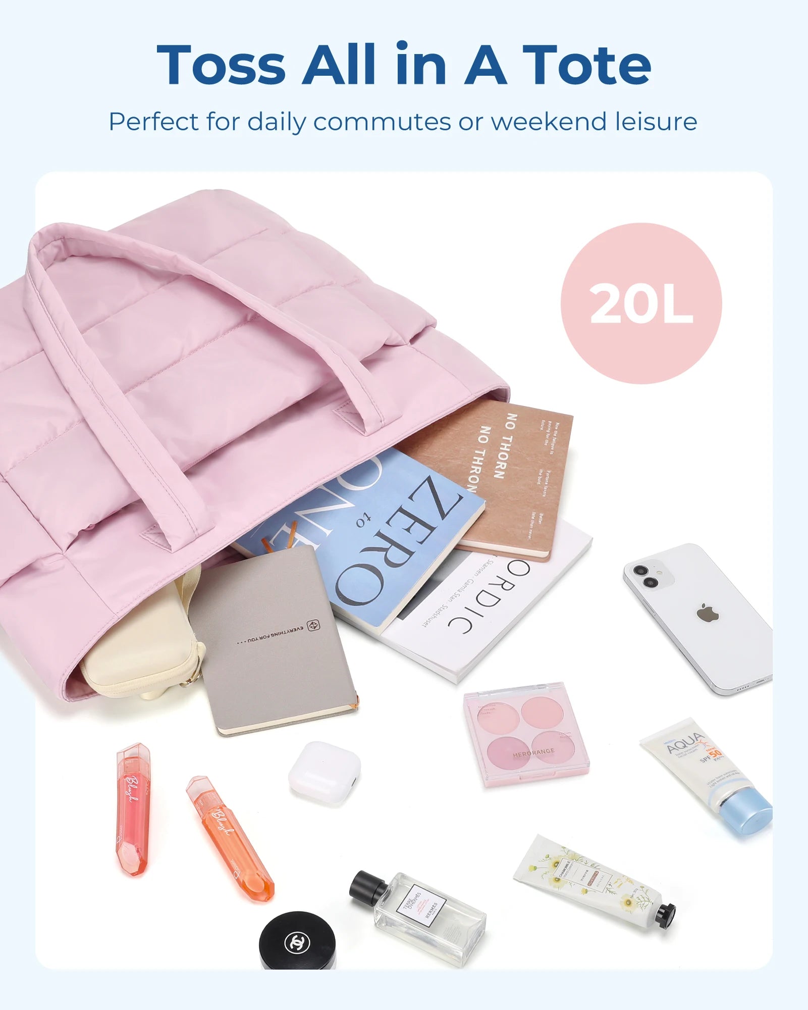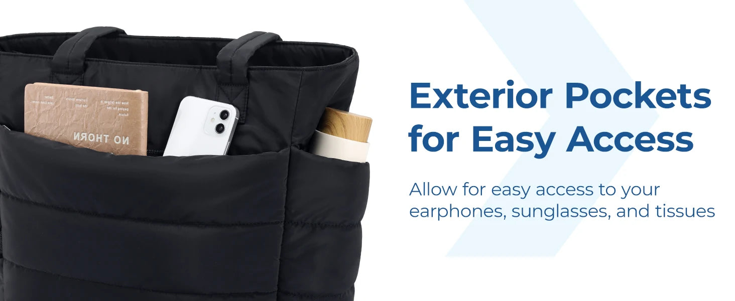 Compact Size: Size: 16.1'' x 6.1'x 12.2'', Capacity 20L. The quilted tote bag suitable daily necessities such as 15.6'' laptops, Umbrella, water cup, power banks, clothes, shoes, etc. The zipper closure design ensures the safety.
