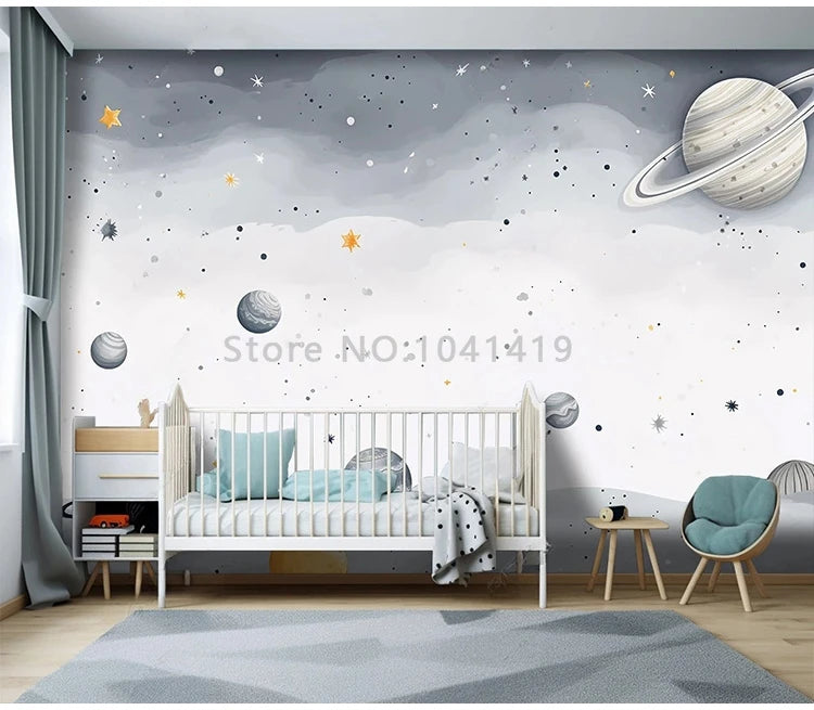 Custom Mural Wallpaper Cartoon Children's Room Kindergarten Cosmic Starry Sky Interior Background Wall Painting 3D Papel Tapiz