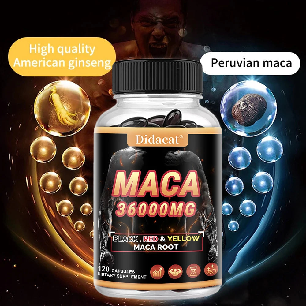 Organic Maca Root Powder Capsules with Black + Red + Yellow Maca Root Extract Supplement for Men and Women - 120 Capsules