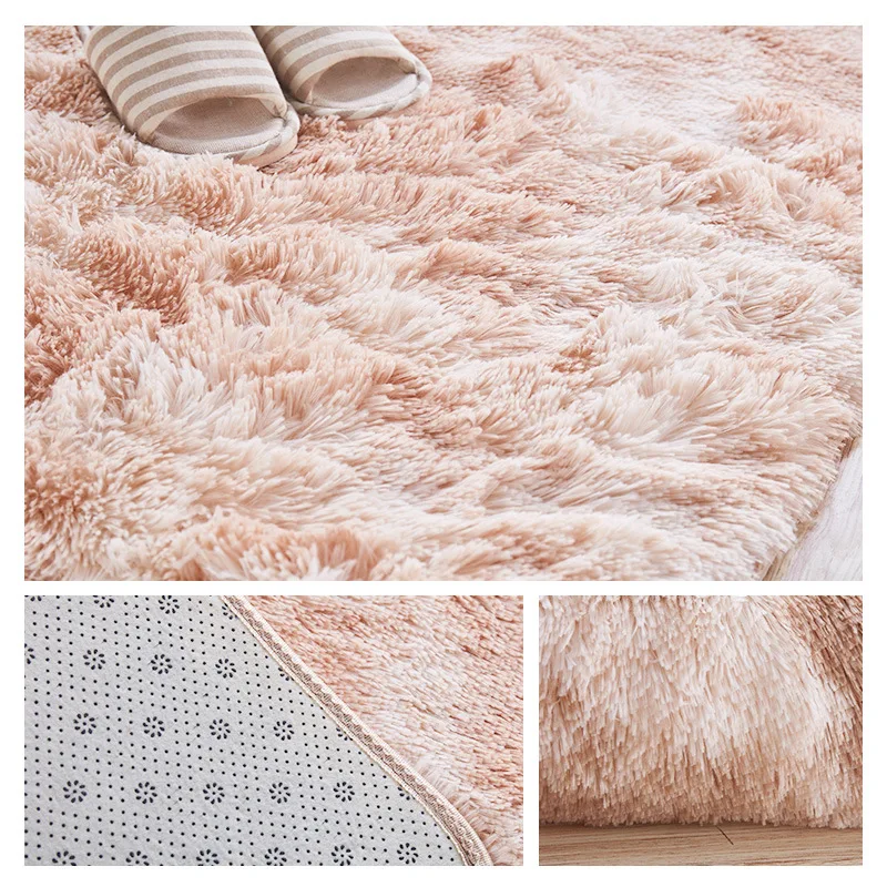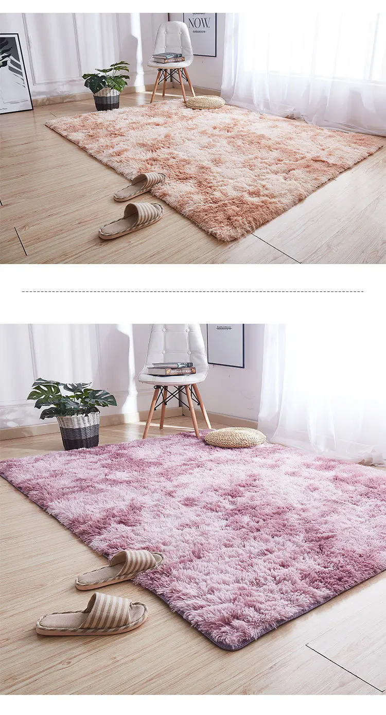 VIKAMA Tie-dyed Plush Carpet Living Room Rug Floor Mat Teenage Girl Bedroom Bedside Rug Large Area Plush Carpet Rug Home Decor
