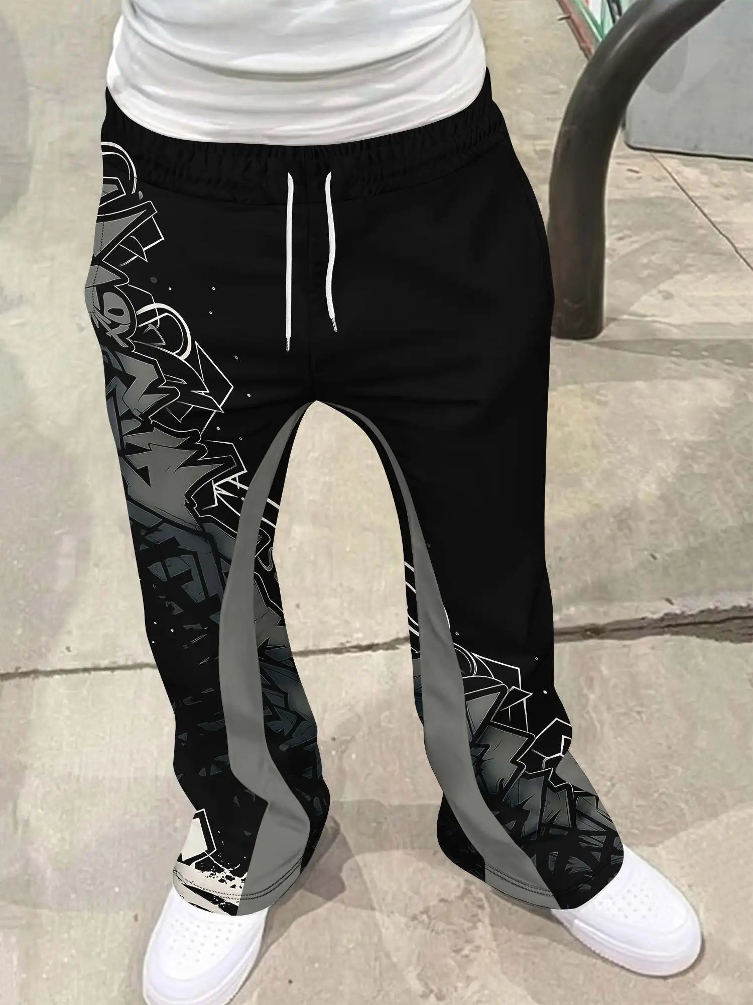 Y2k Flared Pants Men Loose 3D Print Trousers Casual Sweatpants Mid Waist Sporty Female Clothes Streetwear Hip Hop Vintage Pants